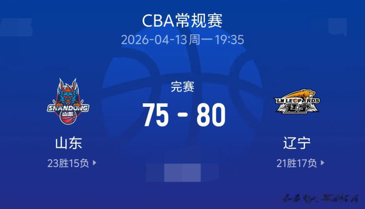 昨晚,山东高速男篮75比80输给辽宁本钢男篮,这是一场势均力敌的比赛,尽管山东男篮以23胜15负,保持60.5%胜的胜率,61积分排在第八名;而辽宁男篮则是以21胜17负,55.3%的胜率,以59分排在第九名。然而,山东男篮却是直接以5分之差输给了辽宁。