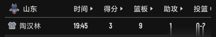 可以说,本场比赛高诗岩已经尽力了,之所以会输掉比赛,主要是本场比赛的另一个核心中锋陶汉林表现非常的不理想,一个拿着D类合同的球员,上场19分45秒,只拿下3分9篮板1助攻,投篮命中率为零,罚球命中率75%。