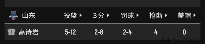 而高诗岩上场34分03秒,拿下14分5篮板6助攻,投篮12个中5个,三分球8个中2个,罚球4中2,还有四个抢断。