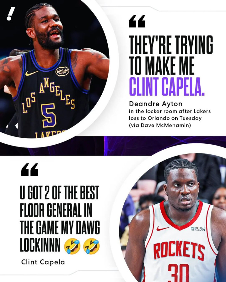 值得一提的是,目前火箭季后赛首轮的对手已经确定为湖人,本赛季中后期,湖人的首发中锋艾顿曾在赛后公开表示自己不是卡佩拉,当时还引起了不小争议。