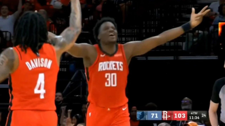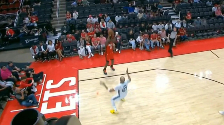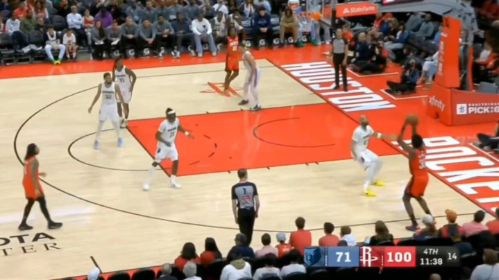 当时第四节刚刚开始,火箭100-71大幅领先,站在底角几乎被完全放空的卡佩拉接到JD戴维森传球,然后投进了一记三分。