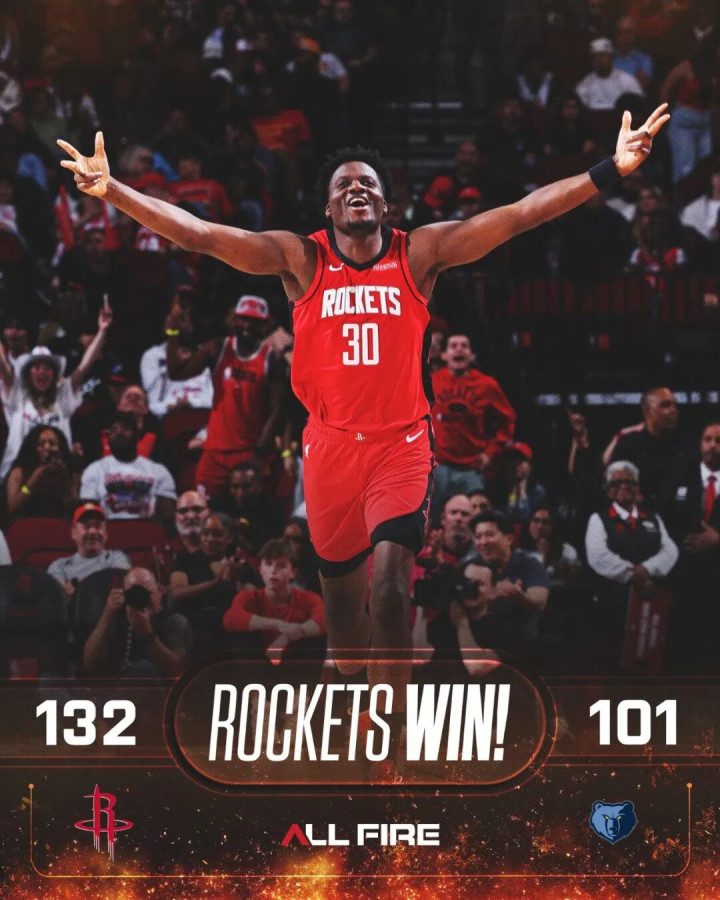 赛前,火箭已经锁定西部第五,灰熊七连败处于摆烂阶段,所以这场胜负并没有太大影响,火箭也是轮休了杜兰特、阿门汤普森、申京、贾巴里史密斯四大主力。