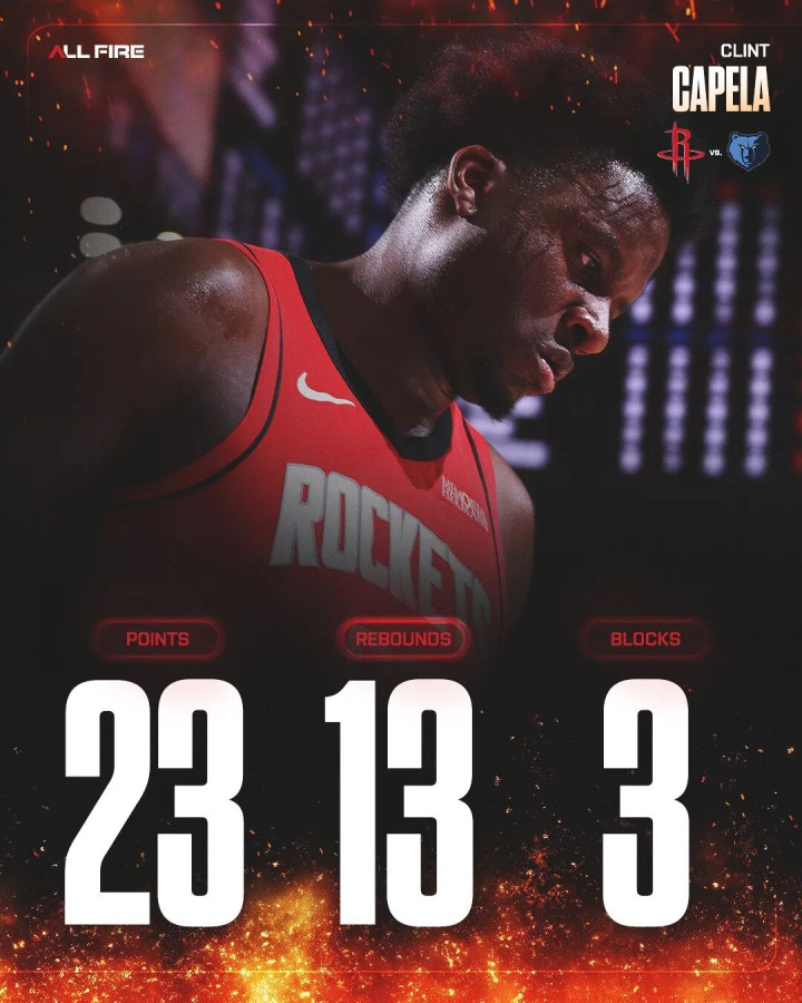 再回到比赛过程上,虽然这场胜负本身并不关键,但卡佩拉的表现也是可圈可点,他在上半场就拿了10分,第三节又单节拿下8分,帮助火箭不断扩大分差。
